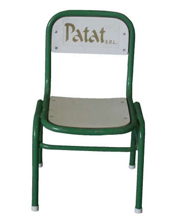 - Silla infantil: toda la estructura estará hecha de caño de 7/8″, con asiento y respaldo de multilaminado de madera revestida en laminado plástico. Toda la estructura está recubierta de pintura epoxi y luego horneada.