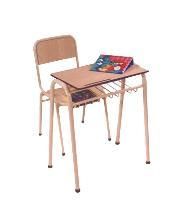 - Pupitre unipersonal: el mismo está hecho de una estructura de caño de 7/8″, protegido en forma envolvente por una estructura de caño del mismo diámetro, y con una tapa de multilaminado de madera revestida con un laminado plástico. Toda la estructura está recubierta de pintura epoxi y luego horneada. Además, tiene un porta útiles en todo el largo hecho con hierro de 6 mm.