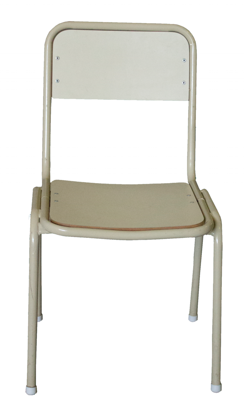- Silla reforzada: toda la estructura estará hecha de caño de 7/8″ y con asiento y respaldo de multilaminado de madera revestida en laminado plástico. Además, está recubierta de pintura epoxi y luego horneada.